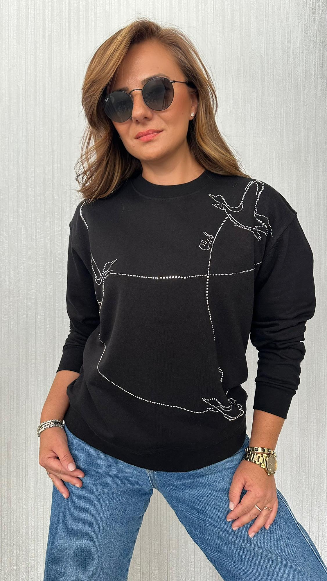 sıra taş siyah sweat